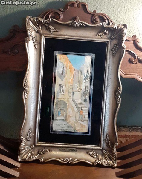 Aguarela Emoldurada, Lisboa Antiga, excelente estado.