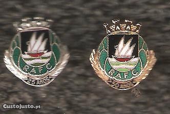 Emblemas do Rio Ave comemorativos dos 25 e 50 anos. Preço de cada.