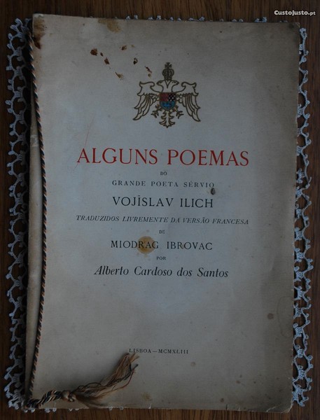 Preço: 20 €Alguns Poemas Grande Poeta Sérvio Vojislav Ilich (1º Edição e Única Ano de 1943)