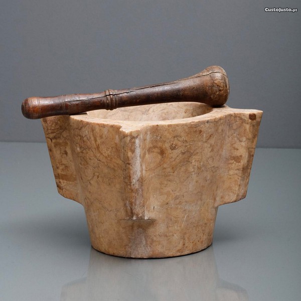 Esculpido em mármore com contrafortes, Séc. XIX/XX. Mão em madeira torneada.