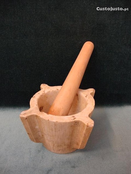Almofariz antigo em pedra lioz com respectivo pilão.