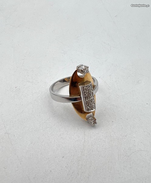 Anel antigo em ouro bicolor 18kt com 10 diamantes.