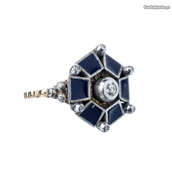 Anel em ouro 18kt, prata e 13 diamantes. Lapidação antiga. Origem Portugal.