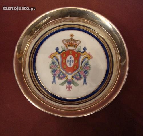 Belíssima aneleira, em porcelana portuguesa, marcada, com cercadura em prata.