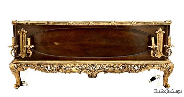 Estrutura em madeira entalhada e dourada com 2 apliques de 2 lumes em metal dourado.