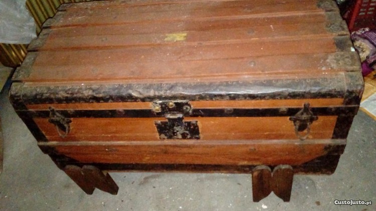 Arca madeira e ferro antiga de lisboa 80cm largura