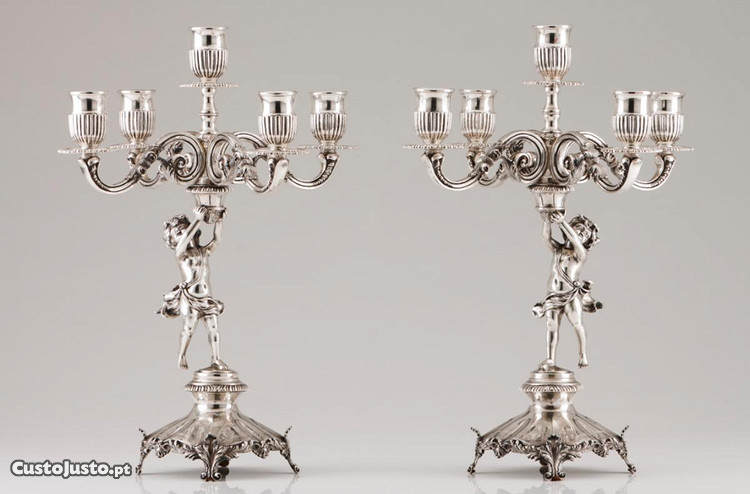 Belíssimo Par de Candelabros antigos de 5 Lumes em prata