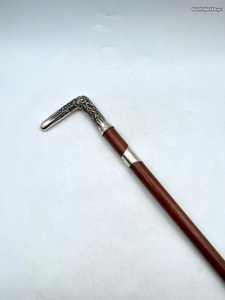 Bengala em pau-rosa com ponteira e castão em prata portuguesa