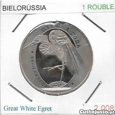 Bielorrússia - - - 1 Rouble - 2008 - - - Ave do Ano - Grande Garça Branca - - - Moeda Proof