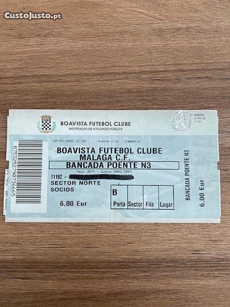 Preço: 20 €Bilhete de Futebol "Boavista x Malaga CF" - Taça UEFA 02/03