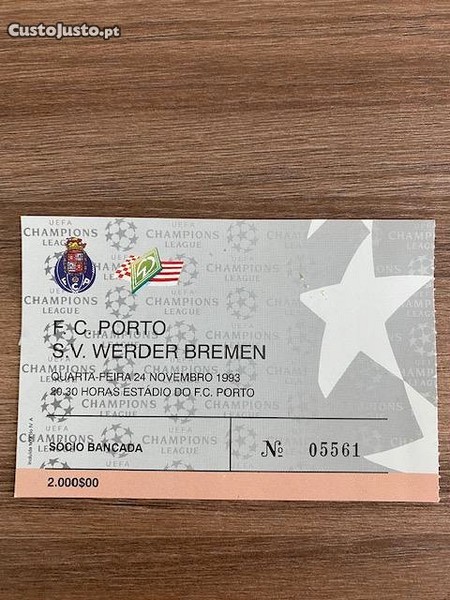Preço: 20 €Bilhete futebol "FC PORTO x Werder Bremen" - 1993