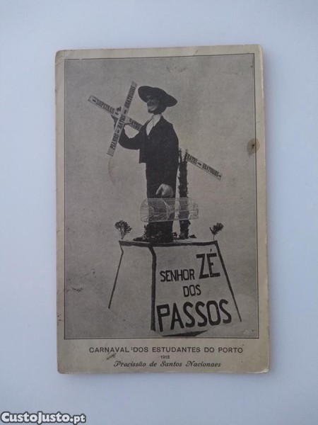 Bilhete Postal "Union Postale Universelle Portugal", circulado em Janeiro de 1913, com fotografia do Senhor Zé dos Passos, comemorativo do Carnaval dos Estudantes do Porto, 1913, Procissão de Santos Nacionaes.