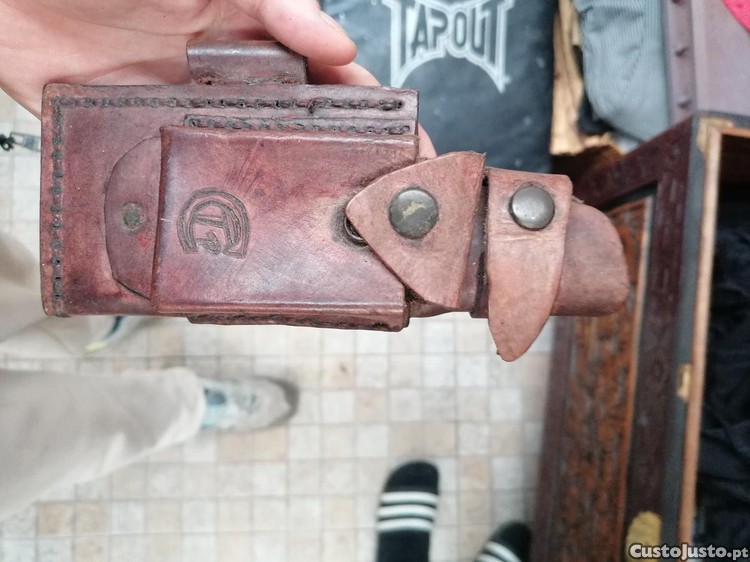 Bolsa para lamina e pedra de afiar em pele bom estado 15cm