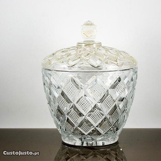 Bomboneira antiga em Cristal com lapidação quadriculada.