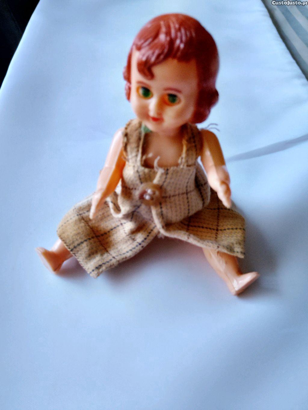 Boneca pequena articulada, vintage, em bom estado. Ideal para colecionador ou decoração. Envio por correio ou entrego em mão na área do Porto.