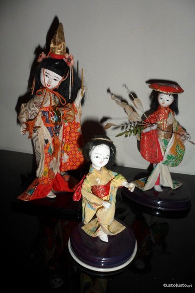 Bonecas Chinesas antigas, com roupas em tecido, cabelo natural
