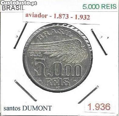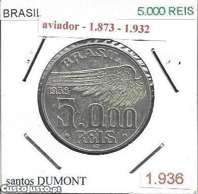 Brasil - - - 5.000 Réis - 1936 - - - Alberto Santos Dumont - Brasileiros Ilustres - - - Moeda de Prata