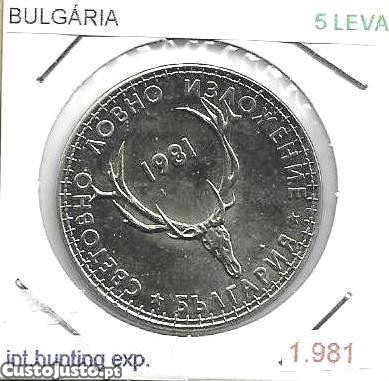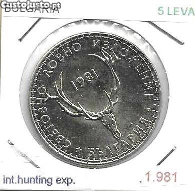 Bulgária - - - 5 Leva - 1981 - - - Exposição Int. de Caça - - - Moeda Proof