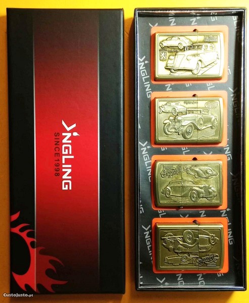 Caixa 4x isqueiros gasolina Calhambeques carros antigos
