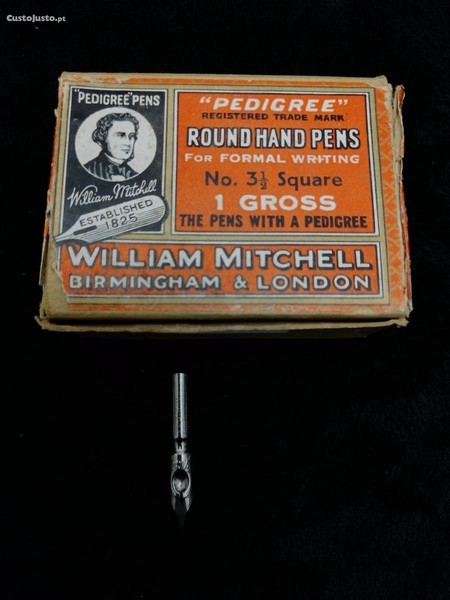 Caixa com 1 grosa de aparos (144), William Mitchell 3 1/2, completamente novos, da década 60/70, na respetiva caixa, por 120EUR + portes de envio ou passando a levantar em Rio Tinto junto à igreja matriz. (sai a menos de 1EUR cada aparo)
