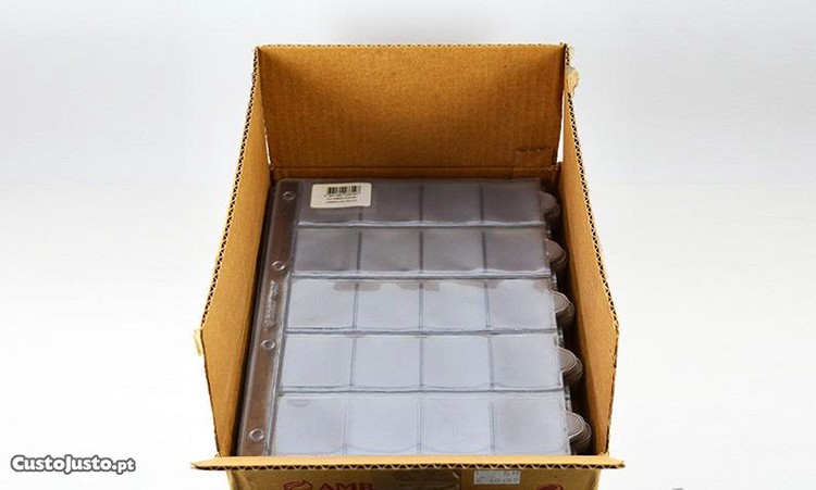 Numismática - Caixa com 24bolsas para moedas da marca Ambar.
