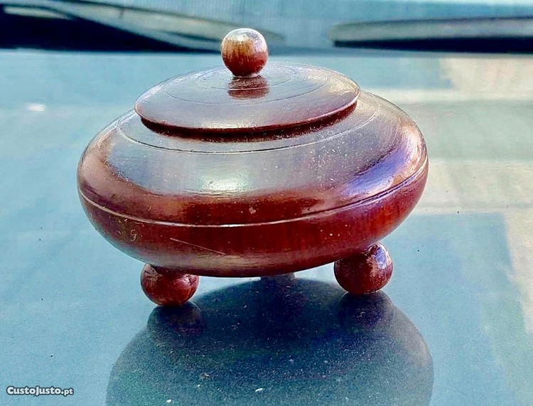 Preço: 17 €Caixa em madeira c/ 3 pés de bola