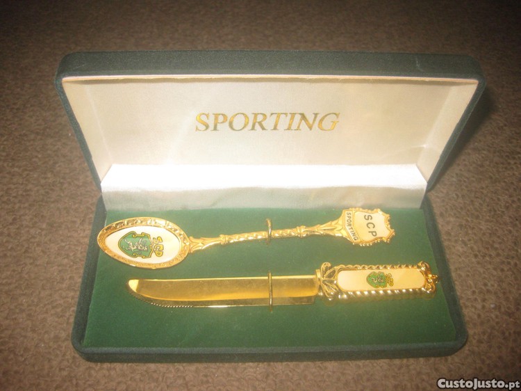 Para venda caixa em veludo com itens de colecionismo do Sporting