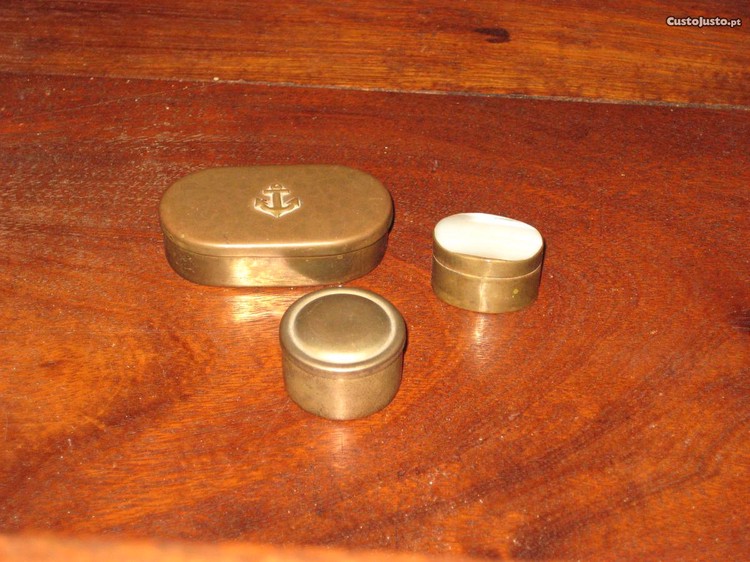 3 caixinhas em metal amarelo (uma delas com madre pérola ) comp.- 8,5cm / comp.- 3cm /comp.- 3cm