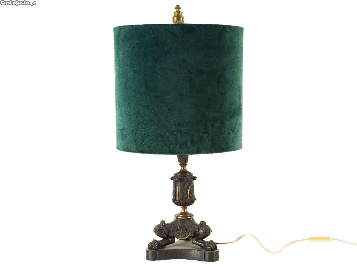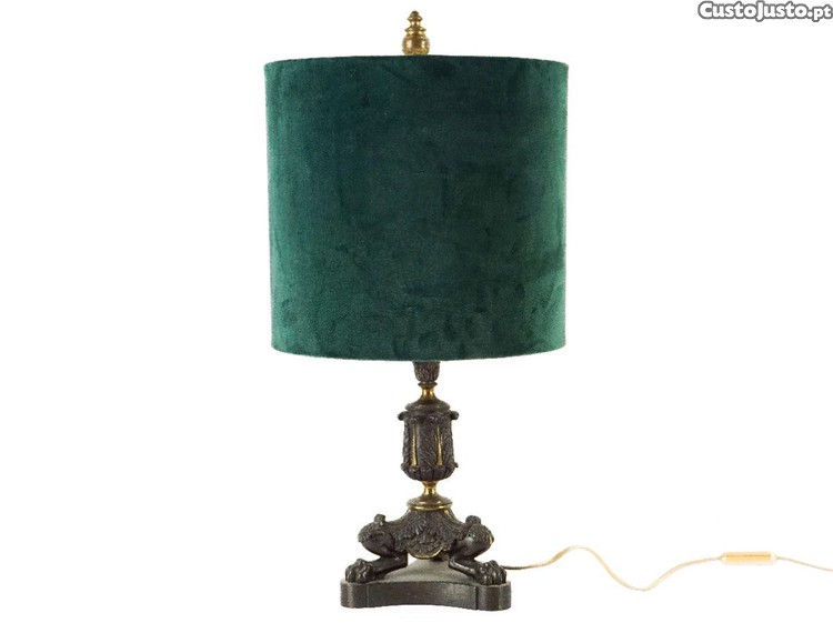 Candeeiro de mesa estilo império em bronze, com abajour em veludo.