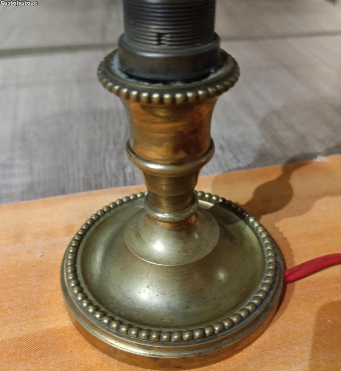 Candeeiro de mesa, em ferro maciço, amarelo, não ferroso nem corrosível . Tanto que o seu peso ultrapassa o 0,5 kg