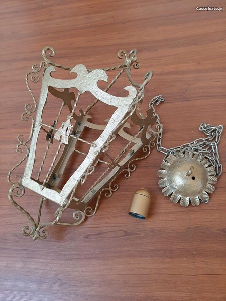 Candeeiro ou lanterna de teto antigo foi restaurado, precisa de vidros e colocar fio elétrico novo.