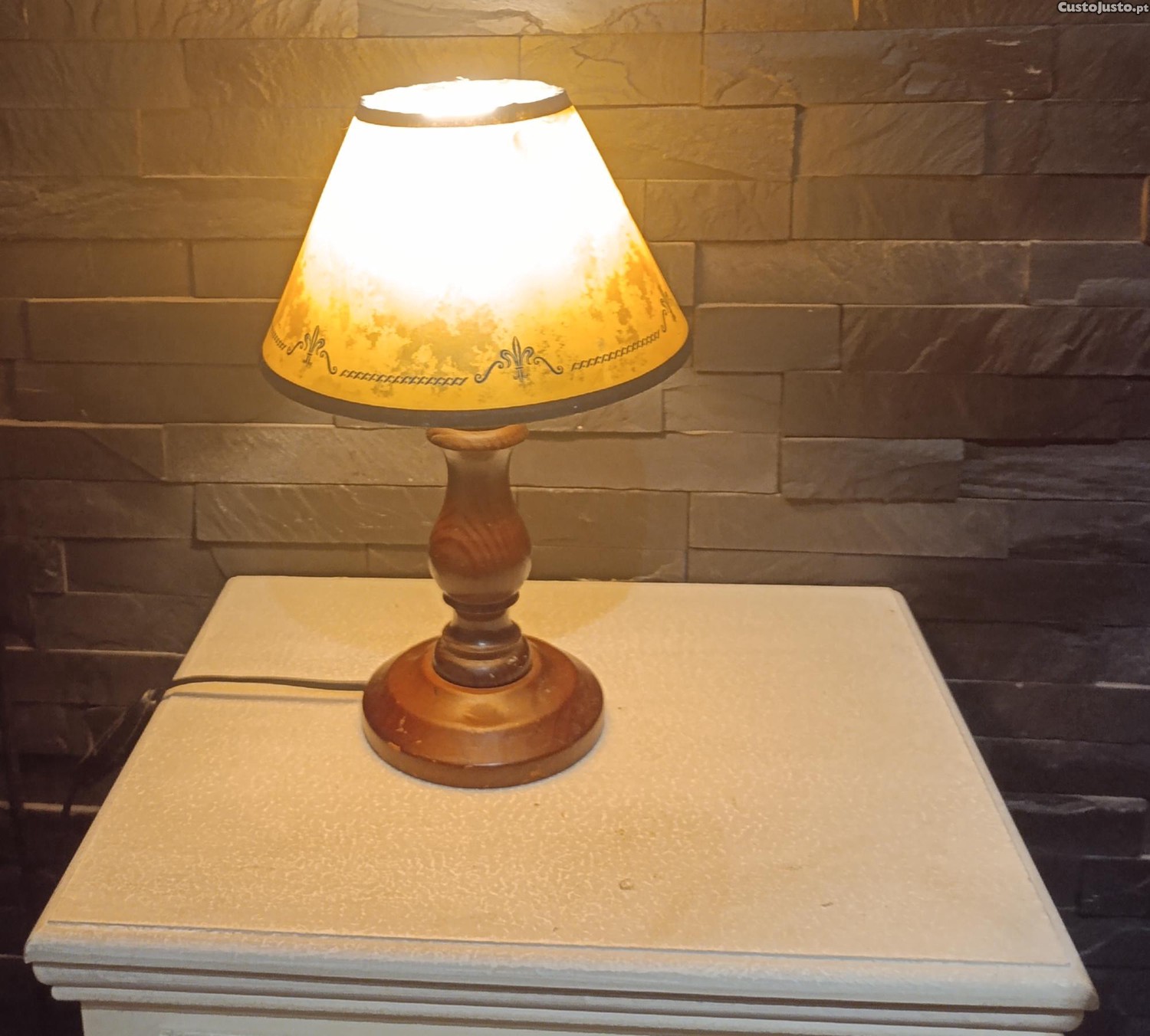 Preço: 12 €Candeeiro mesa, madeira, muito antigo, com abat-jour Origem Itália