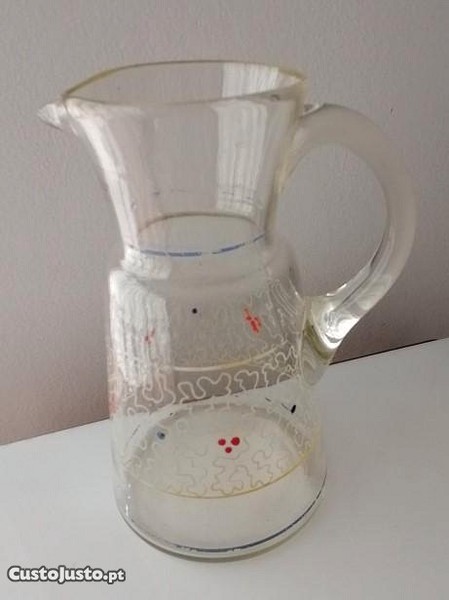 Preço: 15 €Caneca em vidro incolor, pintada , antiga