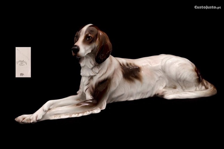 Cão em cerâmica austríaca de Goldscheider - Viena, decoração naturalista. Marcado.