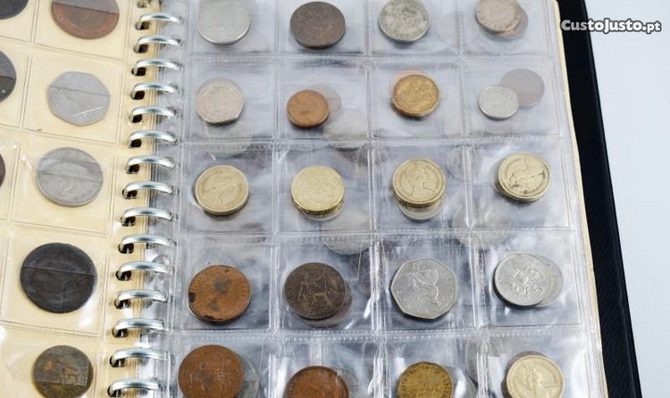 Arquivador com colecção de moedas do séc. XX, cerca de 270 moedas do Reino Unido, USA, Irlanda, Canadá, República Francesa (inclui as mais diferentes tipologias e algumas ainda em circulação com valor nominal). Com várias Moedas em Prata.