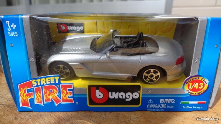 Carrinho Miniatura DODGE VIPER, ESC. 1/43 Da Burago, coôr cinza, descaputável,tem cx. e seu estado é optimo.