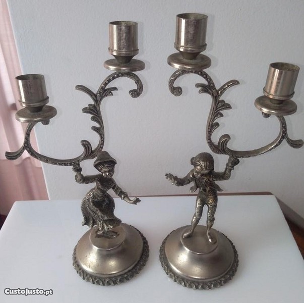 Preço: 23 €Castiçais em metal prateado, com estatuetas