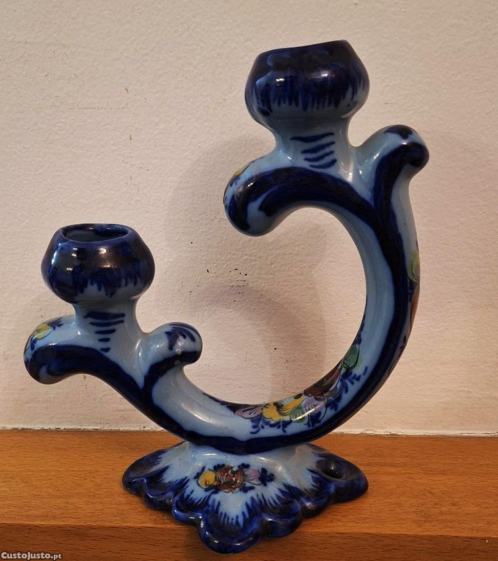 Castiçal de dois lumes em faiança RCCL Alcobaça