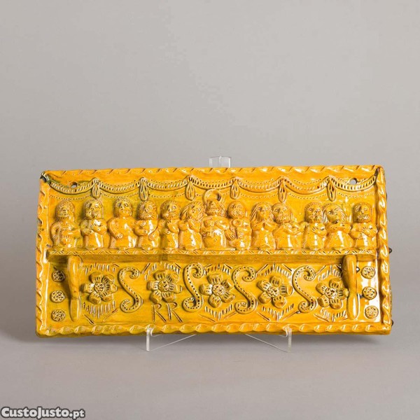 Ceia de Cristo da Rosa Ramalho - Escultura em barro vidrado, decoração monocromada, assinada.