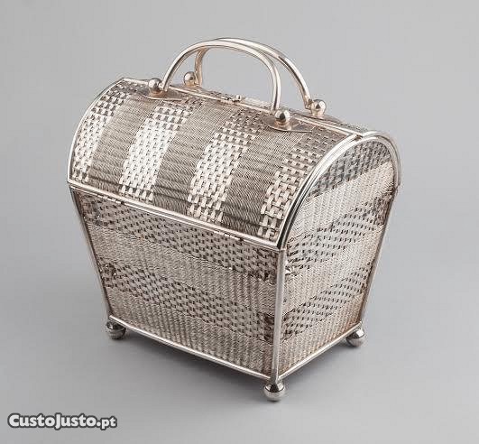 Cesto merendeiro em prata portuguesa, marca de contraste, Javali.