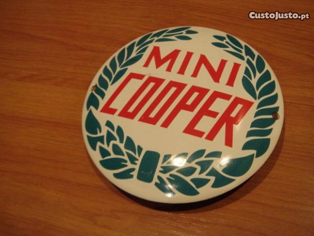 chapa em esmalte mini cooper com 12 cms diametro, perfeito estado,valor 50cinquenta nota: é em esmalte e convexa.