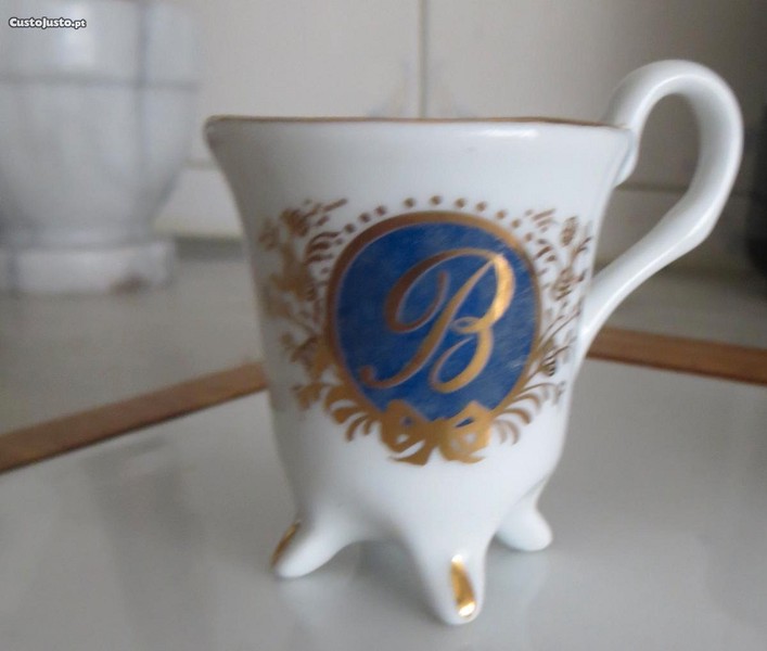 Preço: 6 €Chávena 4 pés e pires Porcelana Orlada dourado - Pires: Diâmetro 9 cm Chávena: Altura 6 cm