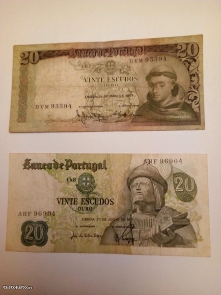 Preço: 3 €Conjunto 2 Notas 20$00 do Banco de Portugal