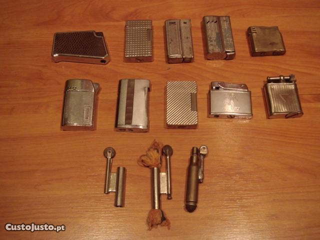 Conjunto isqueiros antigos coleçao, todos com sinais dos anos e do uso , faltam pedras e com algumas marcas. sem gasolina ou gas .Apresentados tal como se encontram .O 1o cima esquerdo ja nao esta disponivel