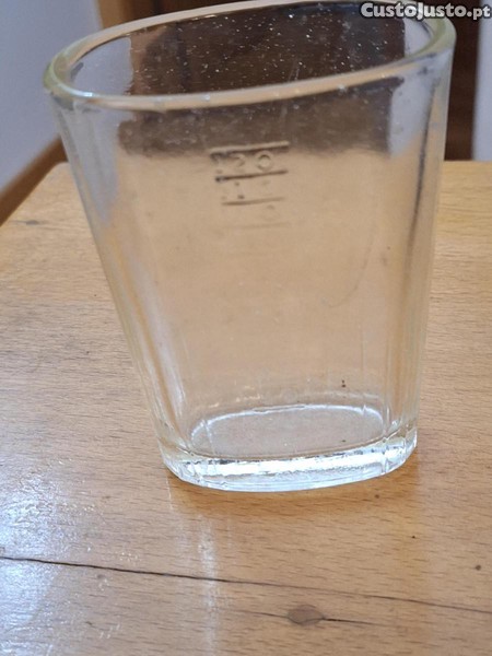 Copo termal em vidro incolor do Centro Vidreiro de Oliveira de Azemeis, com a graduação 120, em muito bom estado, com a altura de 10,2cm.