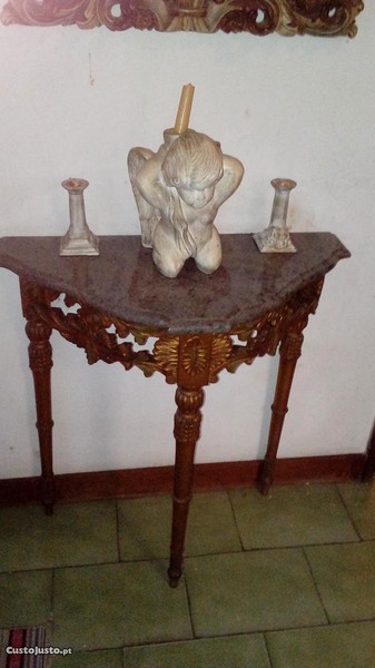 Credencia 55cm largura, 60cm altura. Em talha. Antiga e mármore.necessita pequeno remendo numa das pernas*