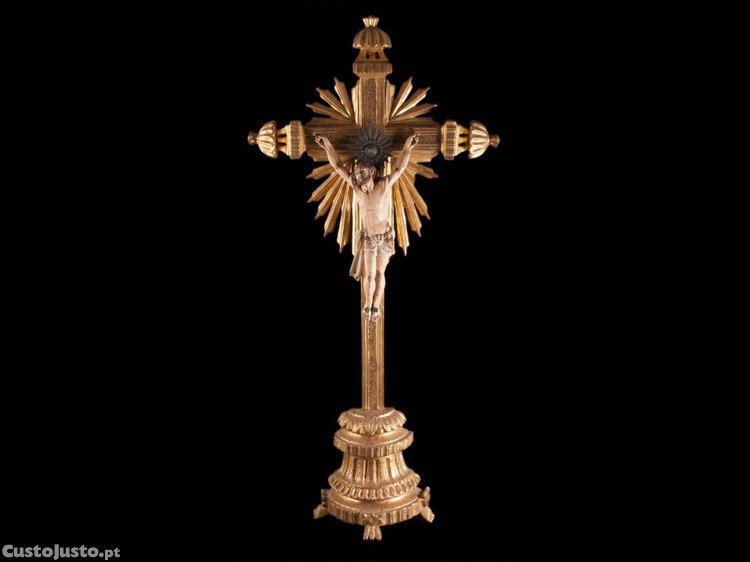 Cristo Crucificado em madeira entalhada e pintada com resplendor em prata.