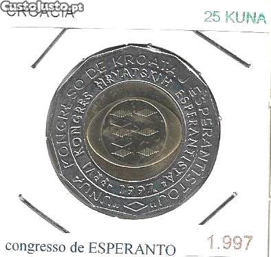 Croácia -- 25 Kuna - 1997 -- 1º Congresso Croata de Esperanto -- Moeda