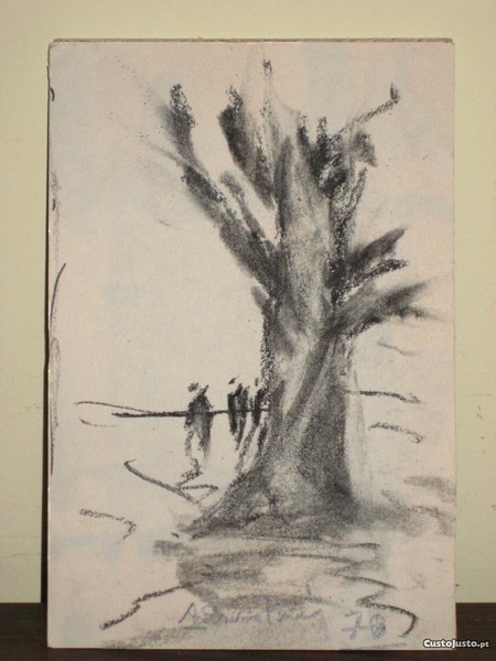 A. Sousa Pereira , obra dupla - desenho a carvão ,sobre papel,assinado e datado de 78 ,com gouache no verso, também assinado .