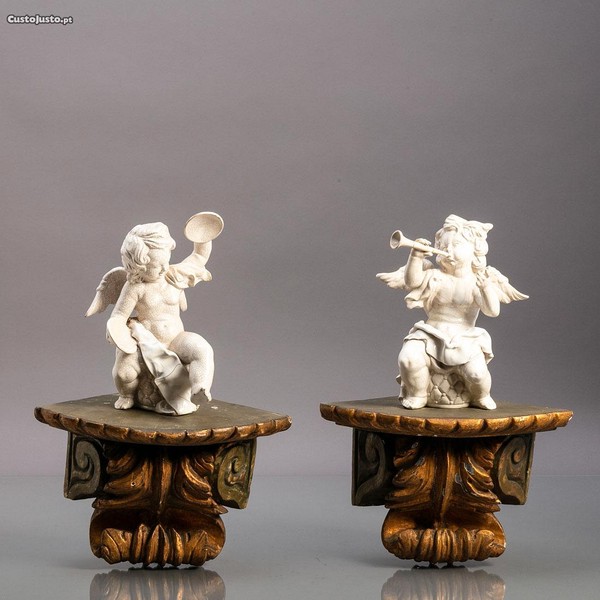 Preço: 250 €Dois anjos músicos e par de mísulas em madeira